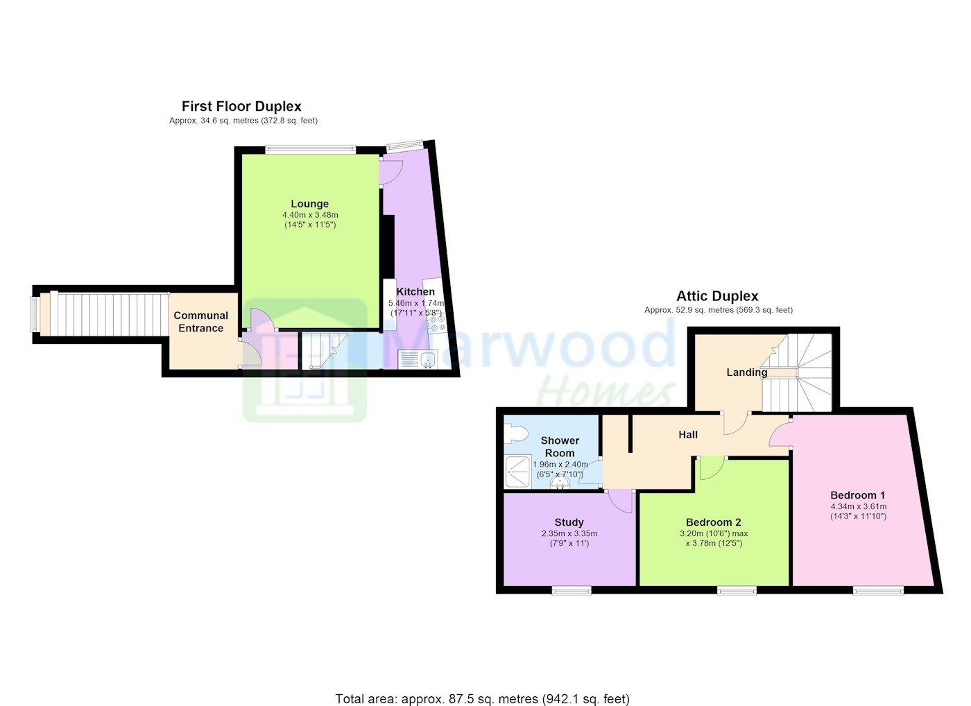 | First/attic | Flat 3 - two bedrooms, study, lounge, kitchen shower room/WC | AST | £7,800 |