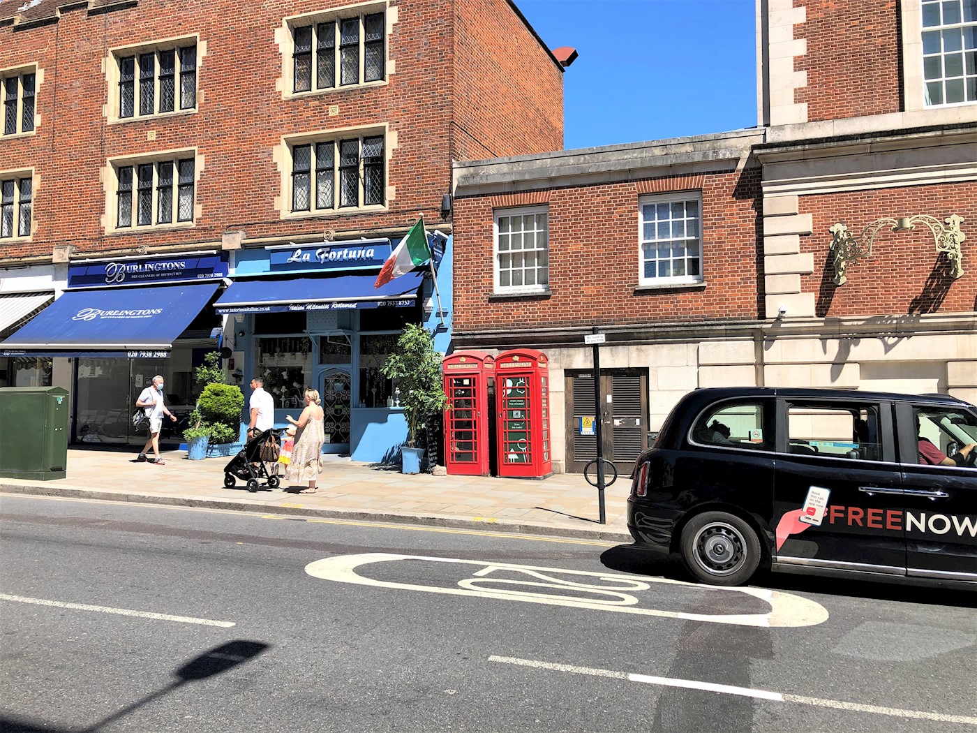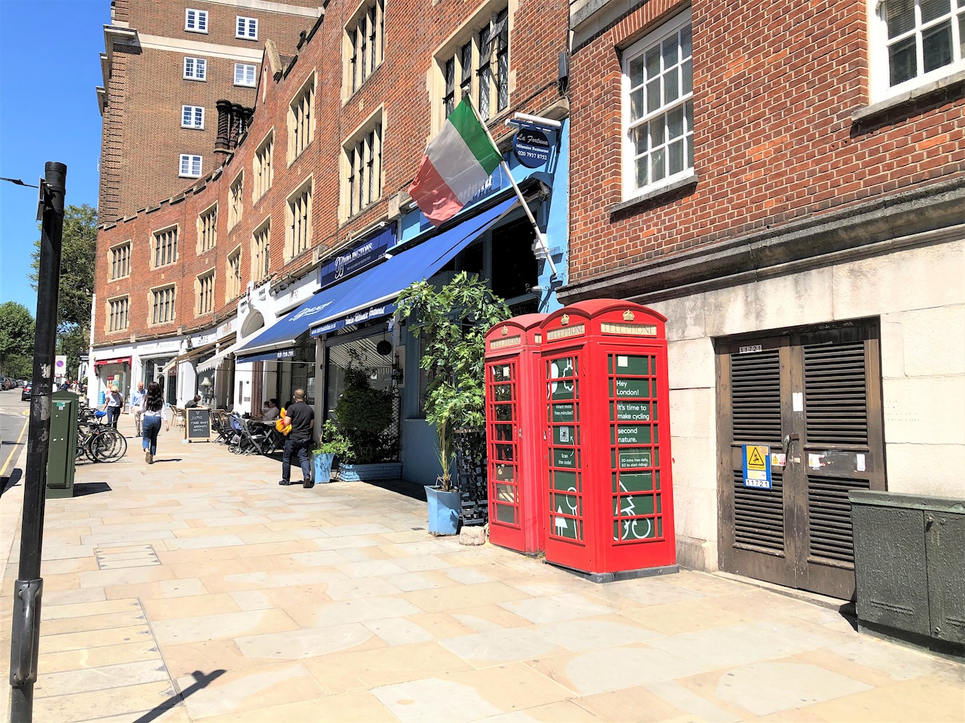 Kensington is an affluent district in the West of central London. The district's commercial heart is Kensington High Street, running on an east–west axis. Kensington Church Street is a shopping street in Kensington designated the A4204, and traditionally known for it art and antiques shops. The telephone kiosk is located on the east side opposite its junction with Dukes Lane.