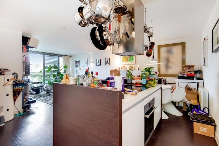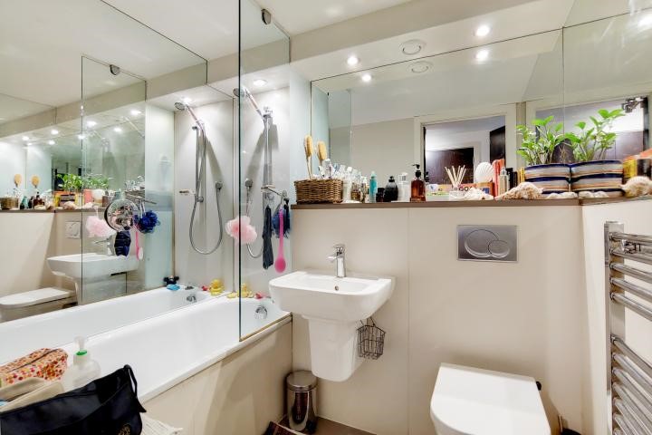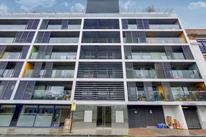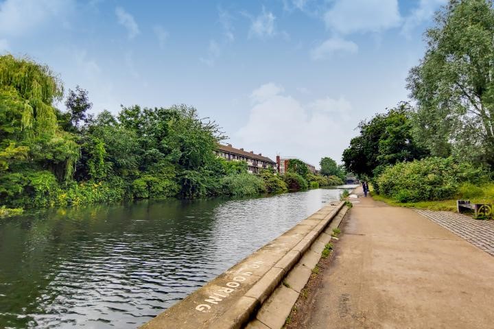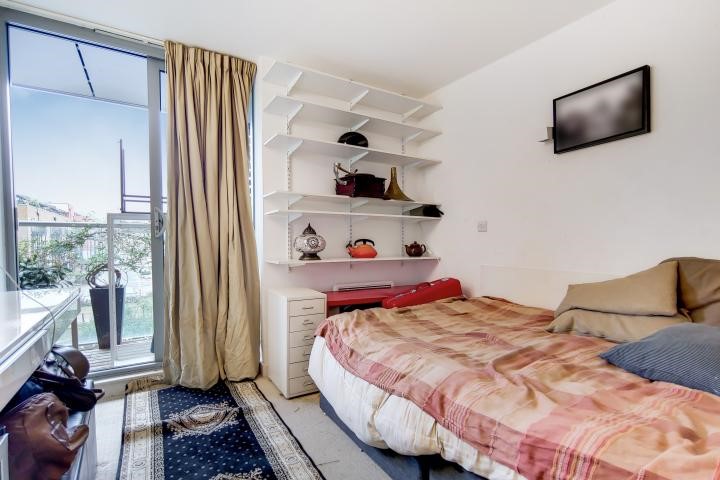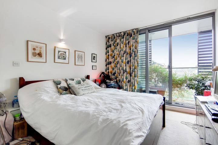 interiors of this two bedroom apartment. Superbly located along Regents Canal, it is accompanied by a chic, communal roof terrace.