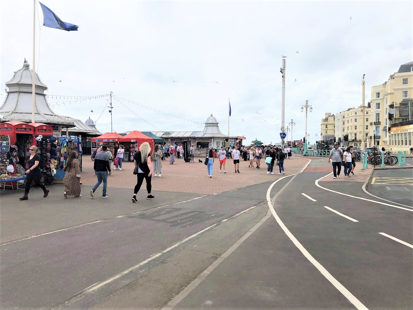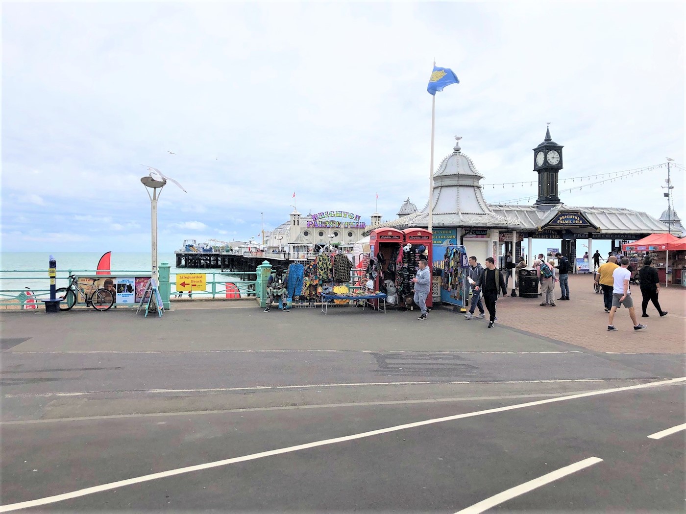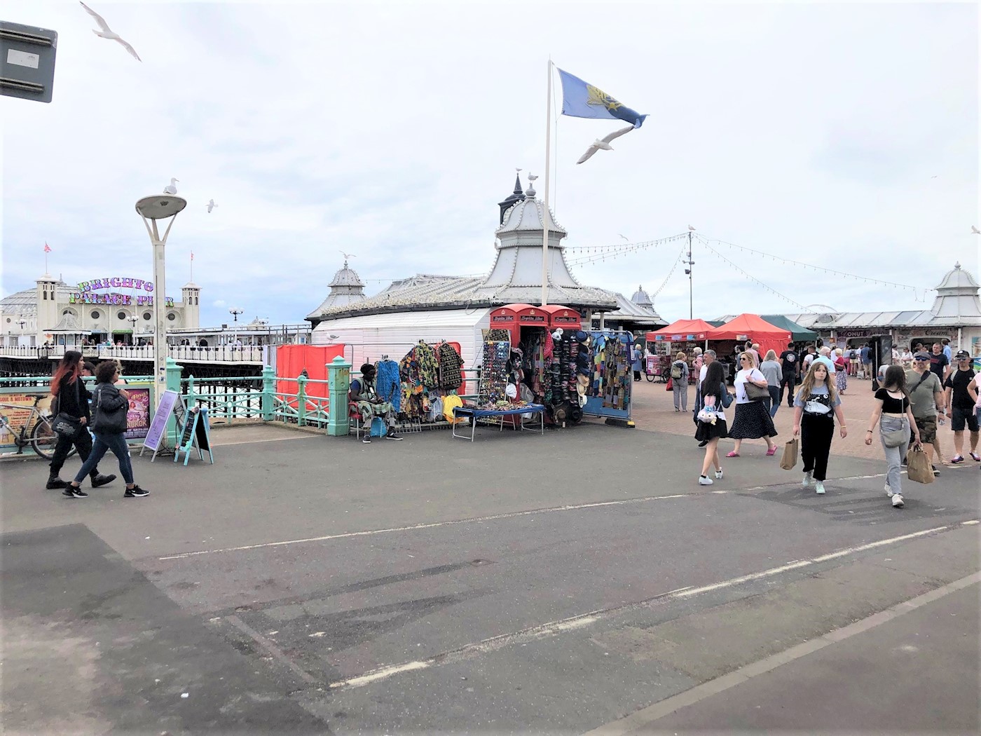 Brighton is a seaside resort and one of the two main areas of the city of Brighton and Hove, 47 miles south of London. The pier entrance is opposite the southern end of the Old Steine (the A23 to London) where it meets the Marine Parade and Grand Junction Road which run along the seafront. The Brighton Palace Pier, is a Grade II listed pleasure pier that remains popular with the public, with over four million visitors in 2016. The two telephone kiosks are located at the entrance to the pier.