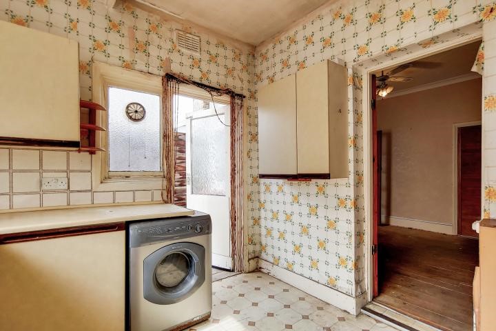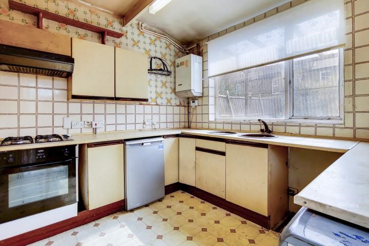 A characterful two bed house is in a Victorian conversion and presents spacious interiors with fantastic potential for a revamp project. It benefits from a sizeable dining room, detached kitchen and a private rear patio.