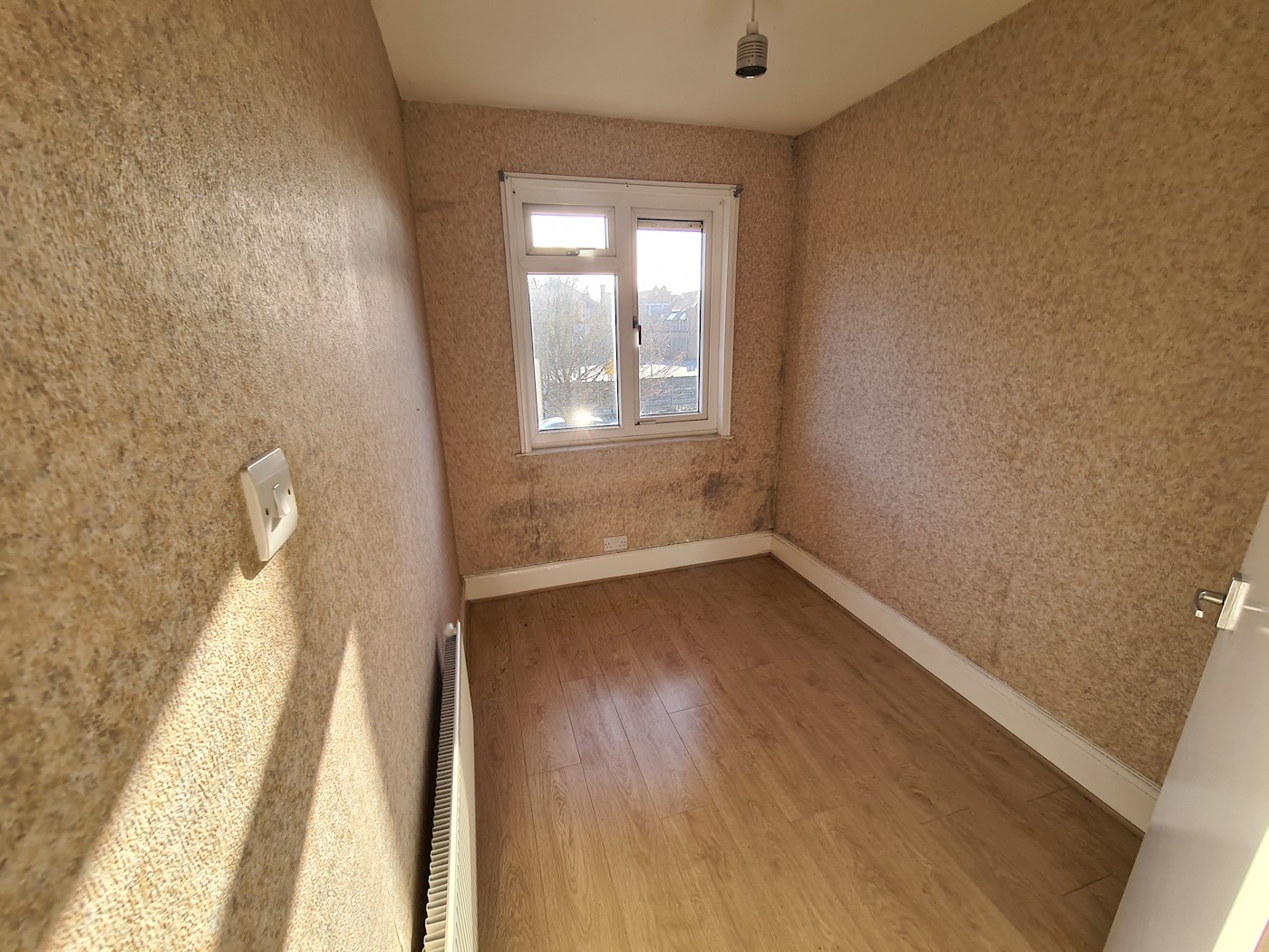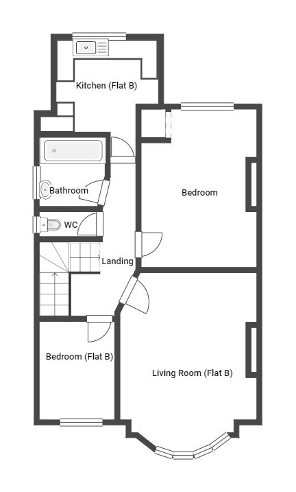 First floor self-contained flat: Two bedrooms, reception room, kitchen, bathroom, separate wc