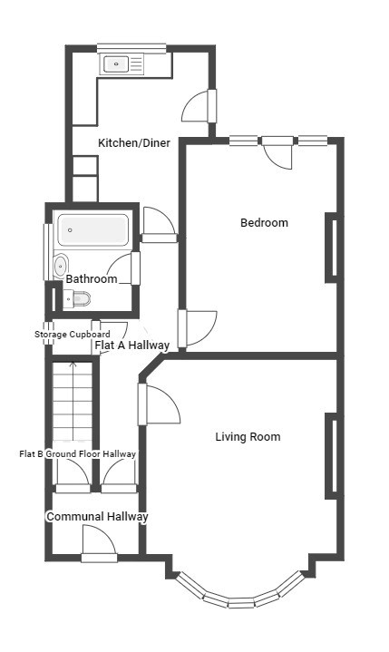 Ground floor self-contained flat: One bedroom, reception room, kitchen, bathroom/wc