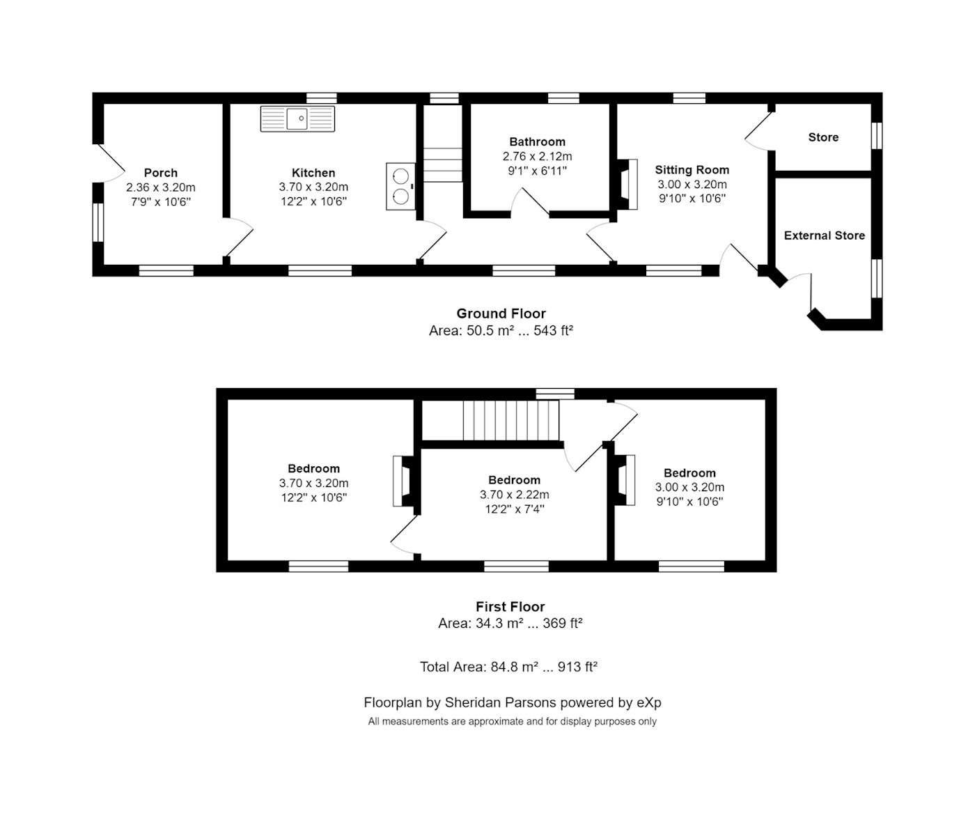 Formerly the ground floor consisted of a porch, kitchen breakfast room, a reception room, a bathroom, and two storerooms. Stairs rose to the first floor where there were three bedrooms, one of which was accessed via the smallest central bedroom.