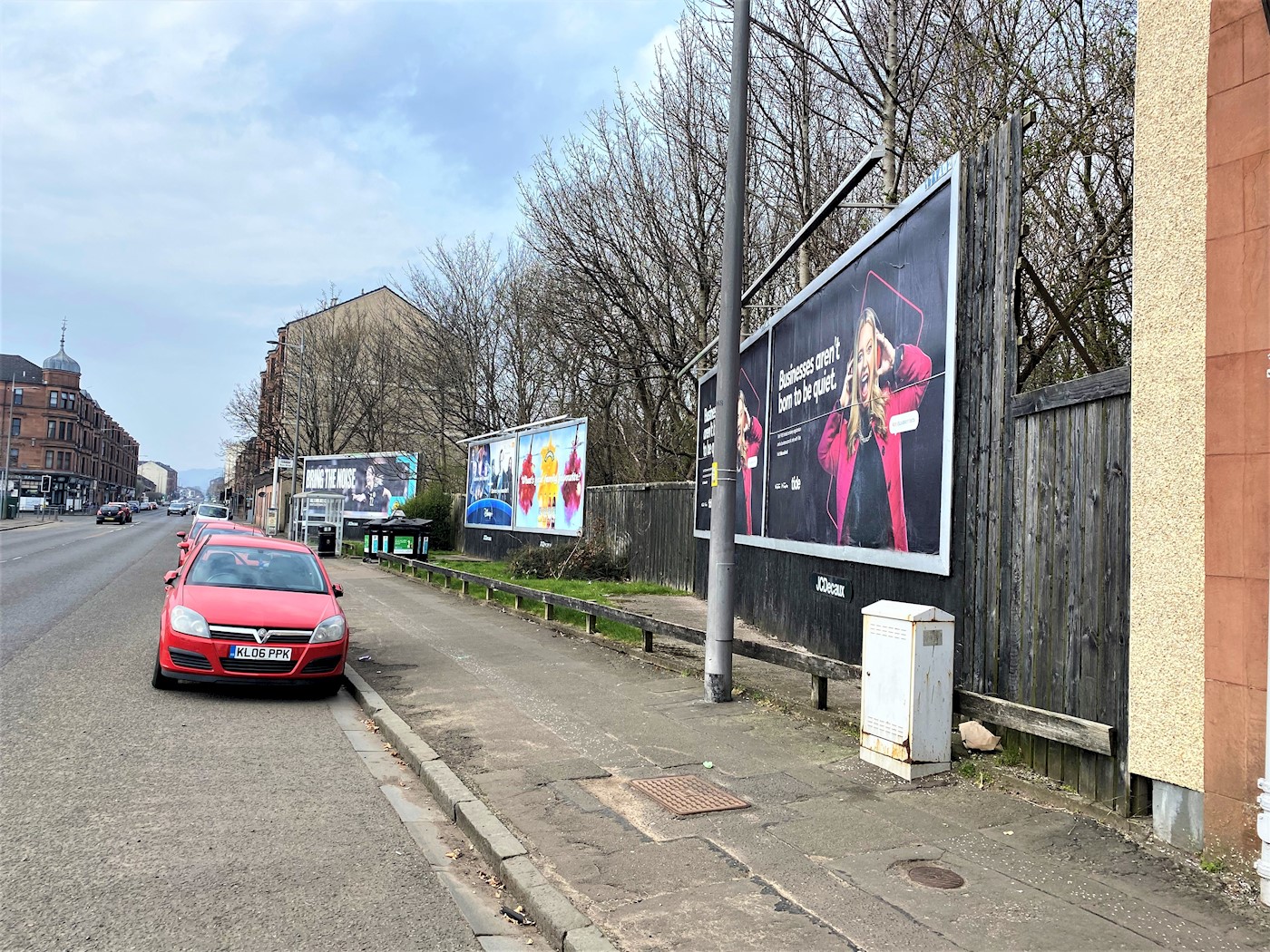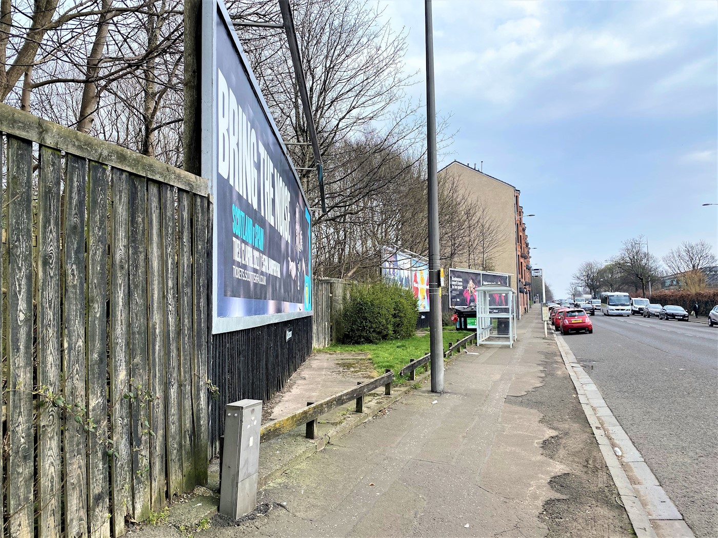 A rectangular shaped site that totals about 1,946 sq m (20,950 sq ft) or 0.195 hectares (0.481 acres) that currently has 4 X 48 sheet advertising hoardings and 1 X 96 sheet. The site is mainly cleared to the rear of the hoardings, and would suit a residential block developement, similar to those at either side, subject to obtaining any necessary consents.