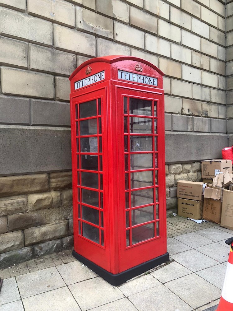 These historic listed "K6" red phone box or “Jubilee” kiosks, commemorating the Silver Jubilee of the coronation of King George V. These boxes are 8'3" high and 3ft square. They were originally designed by Sir Giles Gilbert Scott, who also designed Liverpool’s Anglican Cathedral, Battersea Power Station and Bankside Power Station now Tate Modern. Historic England have listed to preserve these iconic red kiosks, and many have transformed them to coffee shops, libraries, flower shops, museums, bakeries, and defibrillators.