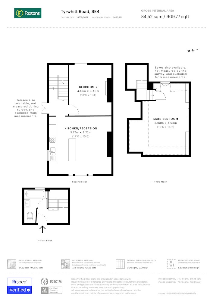 Two bedrooms / one bathroom and wc / open plan kitchen reception / terrace