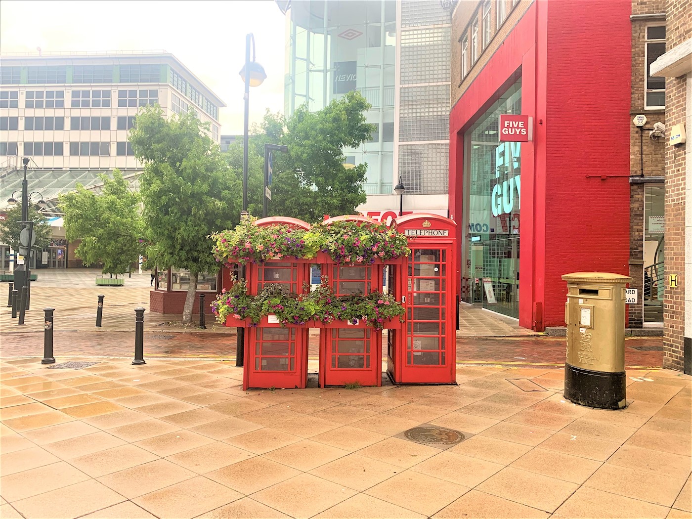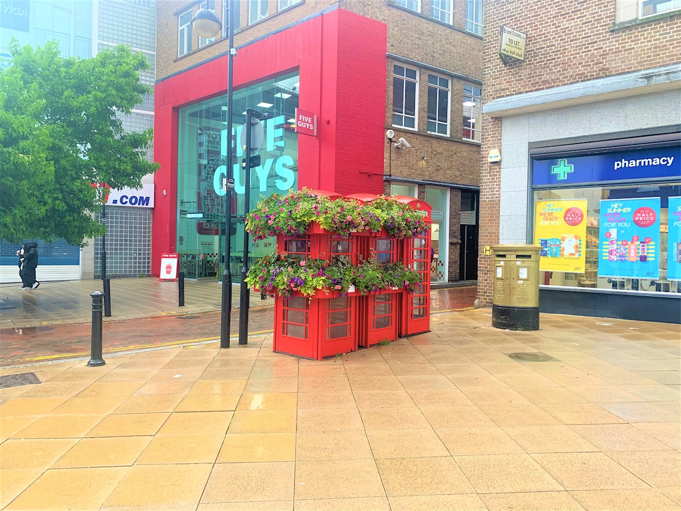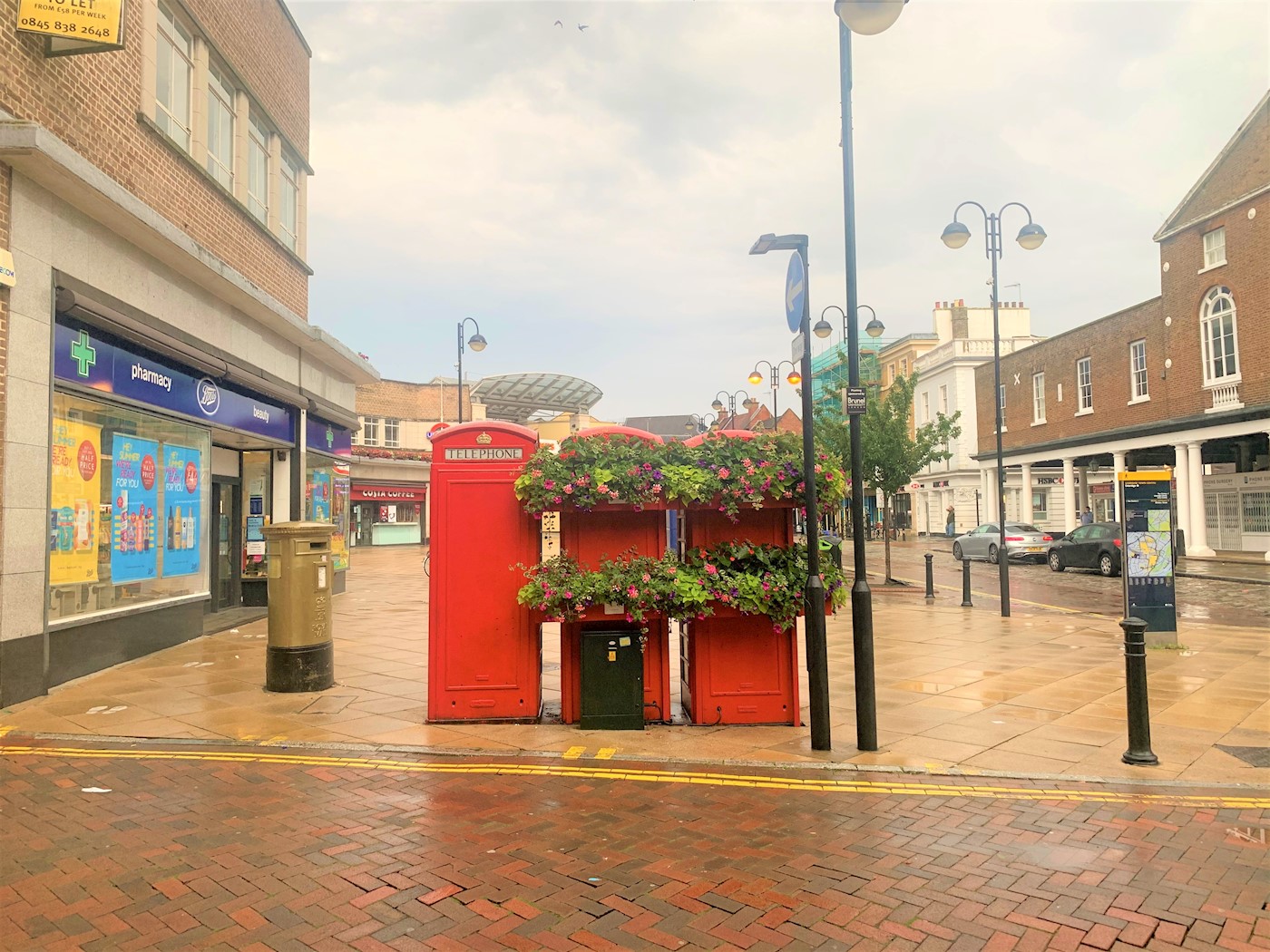 Uxbridge is a suburban town in West London and the administrative headquarters of the London Borough of Hillingdon. Situated 15.4 miles west-northwest of Charing Cross, and is one of the major metropolitan centres identified in the London Plan. Uxbridge historically formed part of the parish of Hillingdon, and is a significant local commercial centre. The kiosks are located on Bakers Yard, on its junction with the High Street outside Boots.