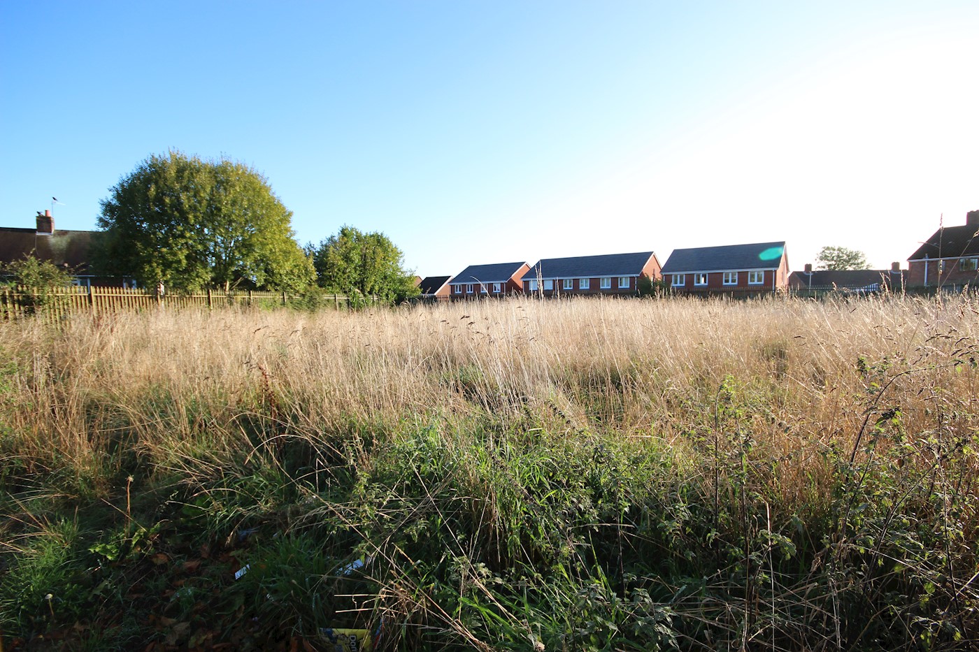 The property comprises a rectangular area of securely fenced and level open land in an established residential area and new housing along one boundary.