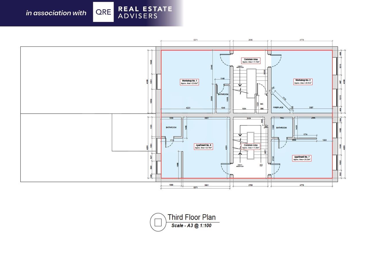 The upper floors comprise 3 x workshops / offices together with 8 x studio apartments which are all in need of refurbishment. The first, second and third floors are entered through a separate entrance via No. 44.