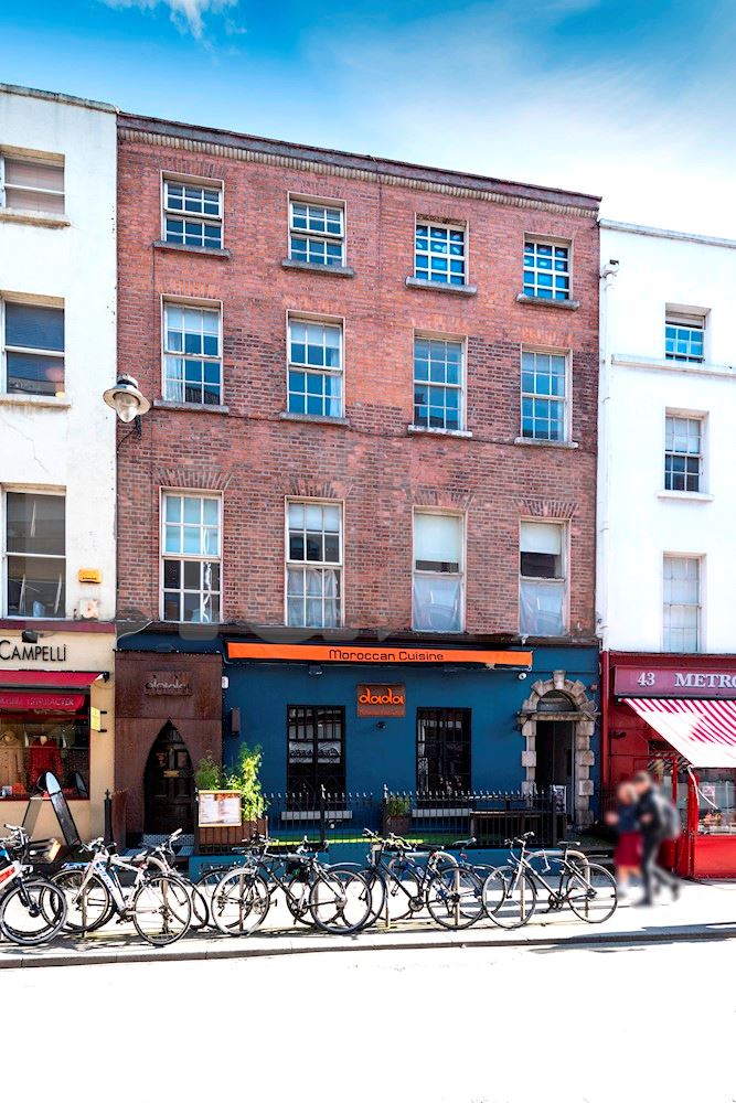 The basement and ground floors are both let to an individual t/a Dada Moroccan Cuisine & Tapas Restaurant on separate coterminous leases until April 2030 at a combined rent of €123,000 per annum. The lease provides for five yearly rent reviews and full repairing and insuring covenant.