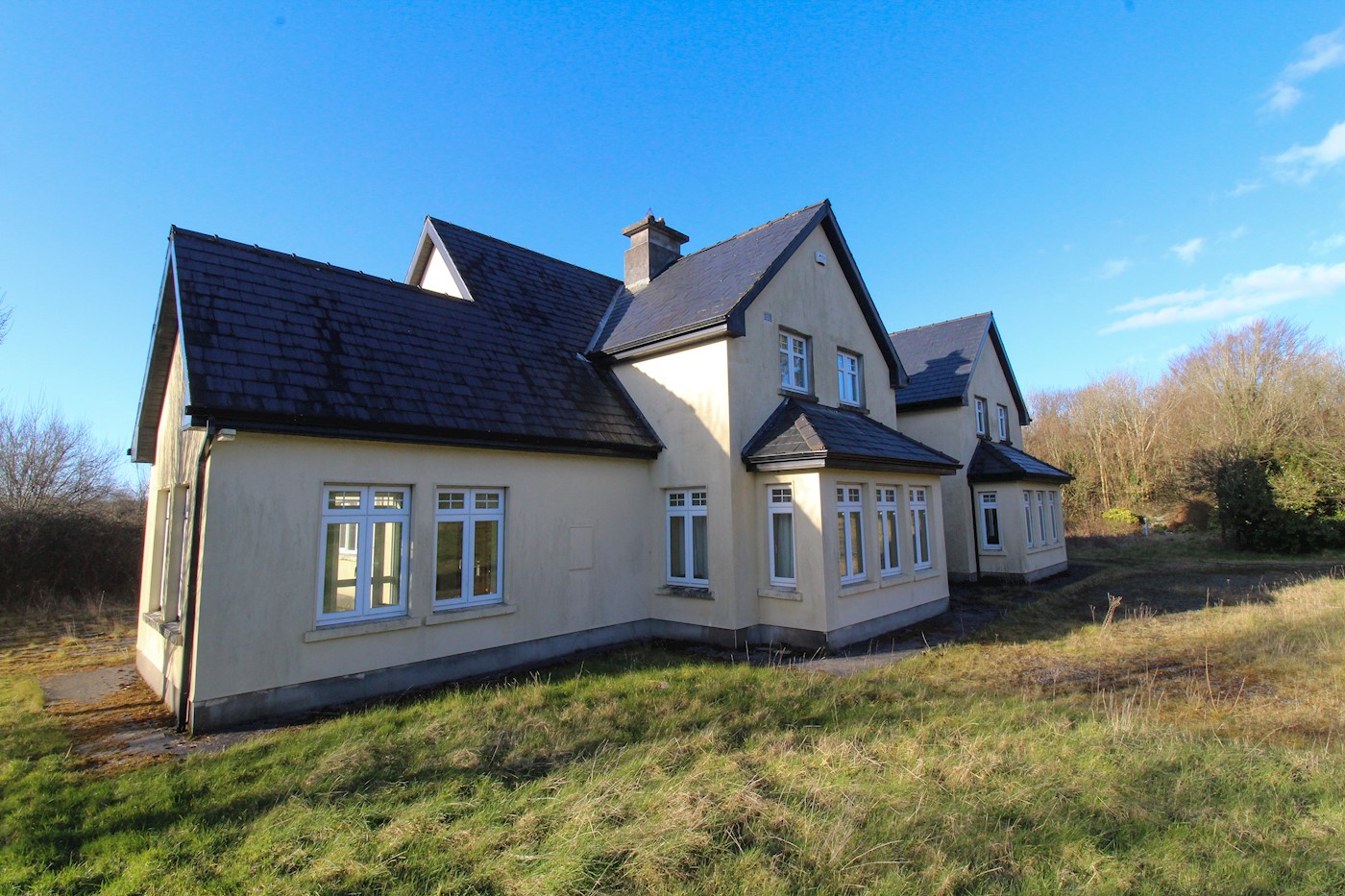 A detached five bedroom house with gardens to the front and rear. The property is arranged over ground and one upper floor beneath a pitched roof. We are informed the property extends to approximately 433 sq. m (4,661 sq. ft) and on a site area extending to 0.77 hectares (1.9 acres).