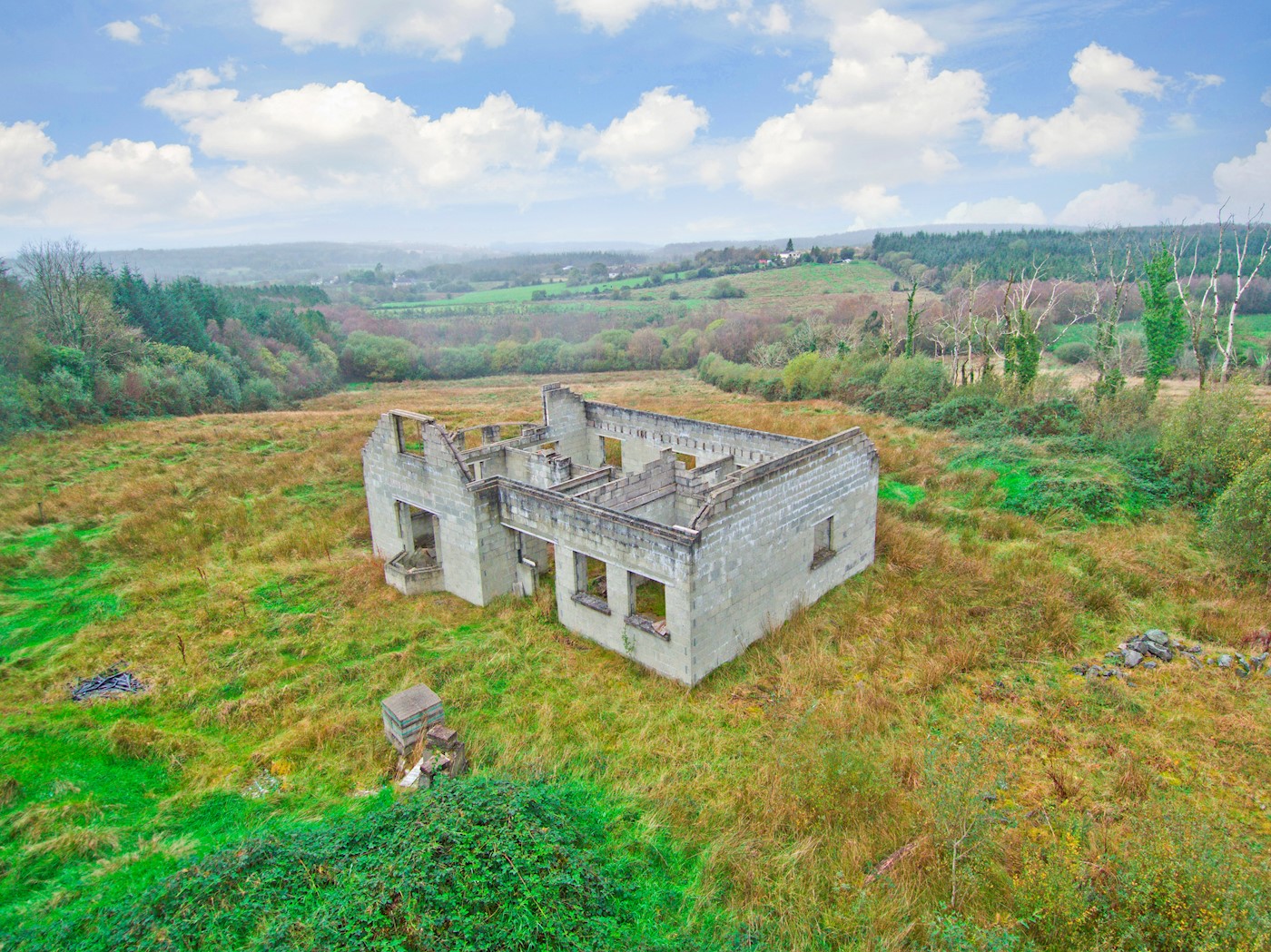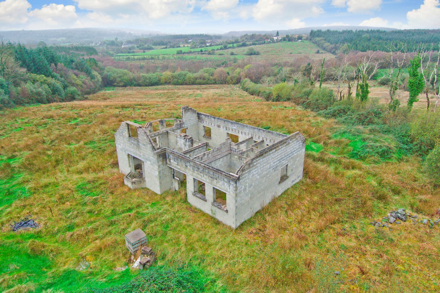 A detached house requiring completion work situated on an elevated site with panoramic views. The property is situated on a site extending to approximately .5 acres (.21 hectares).