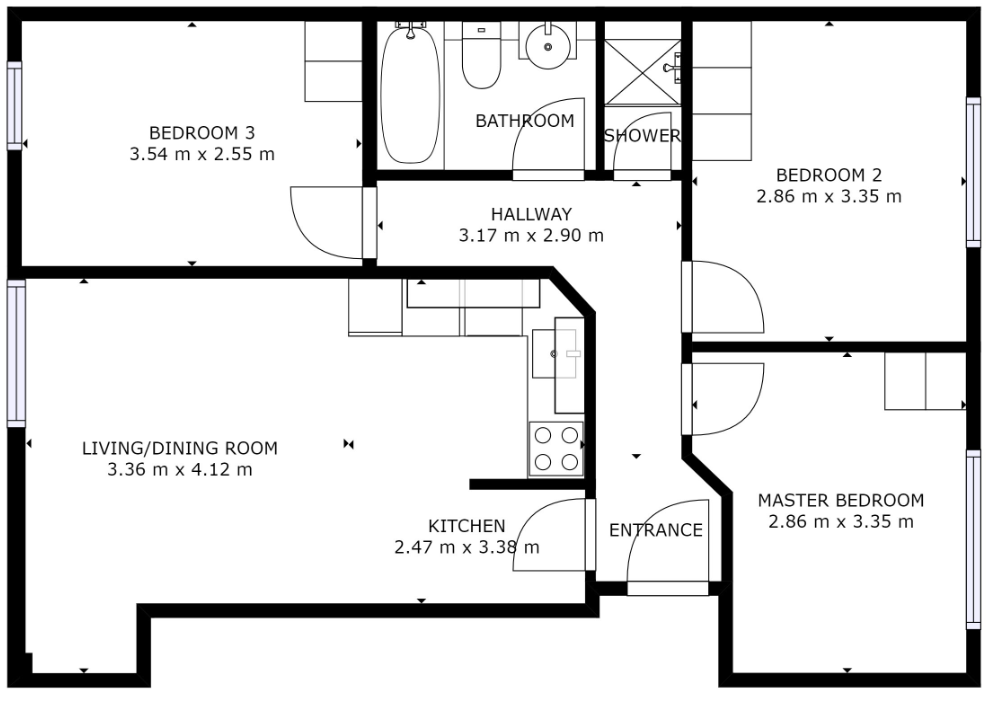 The subject property comprises a second floor, three bedroom apartment. The property benefits from undesignated free parking and is comprised within a building arranged over ground and two upper floors. Heating and hot water are supplied through off peak storage heaters and Economy 7 timers. We are informed the property extends to approximately 62 sq. m (667 sq. ft).