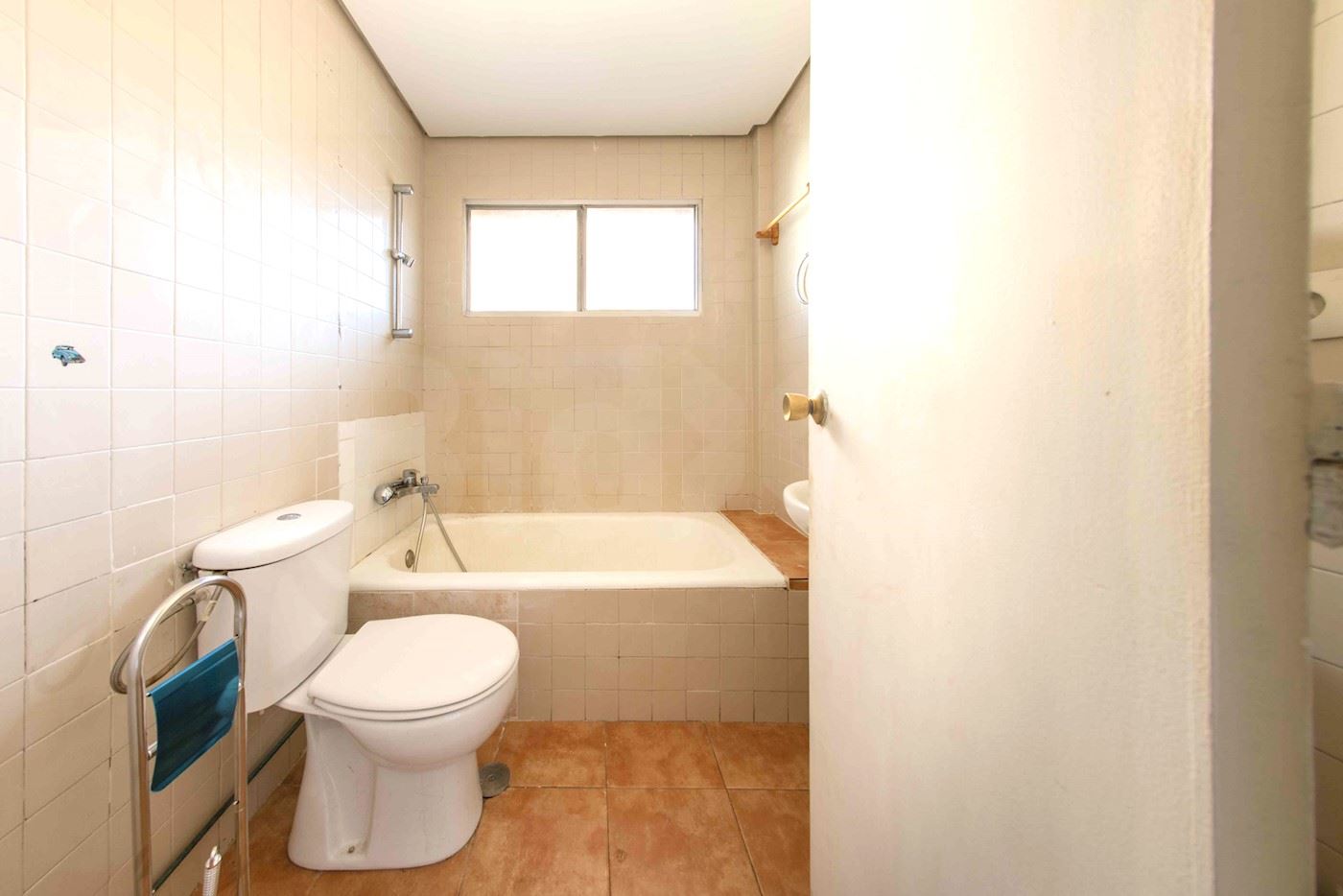 This apartment has an approximate total area of 77 sq.m (constructed) and 67 sq.m (usable) on the second floor, with the advantage of an elevator. The internal layout includes an entrance hall, a living-dining room, two bedrooms, a bathroom, a guest toilet, and a kitchen. Additionally, it features a laundry area and a terrace. The building offers a communal swimming pool and a garden. However, it is in need of some improvements. It was built in 1974.