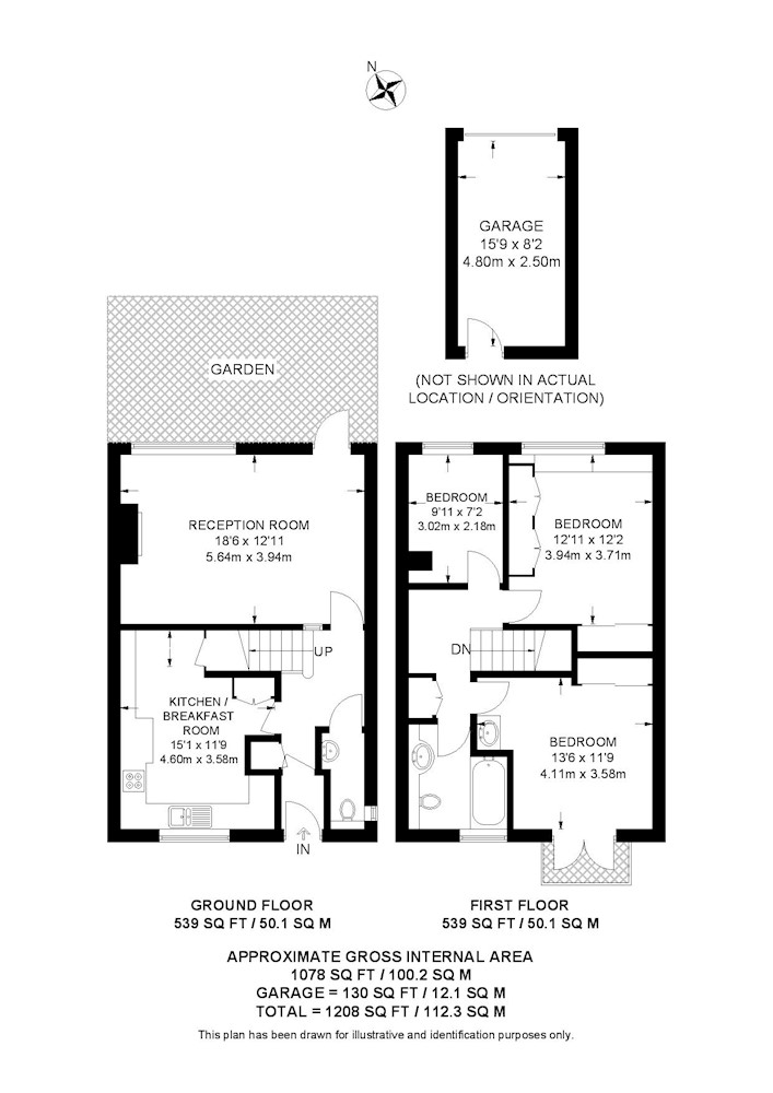 Ground floor: reception room, kitchen, WC, garden, garage.