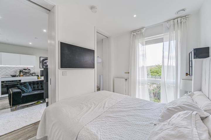 Situated on the third floor, this wonderful one bed flat boasts bright and stylish reception space with separated bedroom space, modern open-plan kitchen and lovely private balcony.