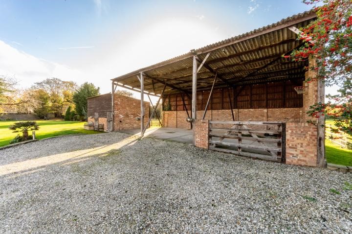 Ground floor: two reception rooms, dining room/kitchen, entrance hall, office, utility room, two WCs, two outbuildings, stables/barn.