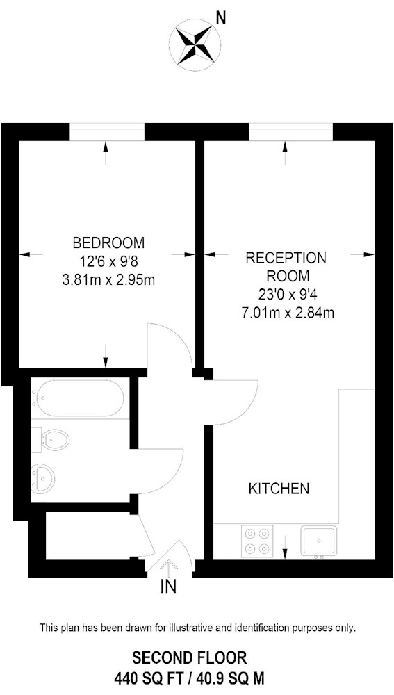 Gross internal floor area is approximately 440 Sq Ft (40.88 Sq M)