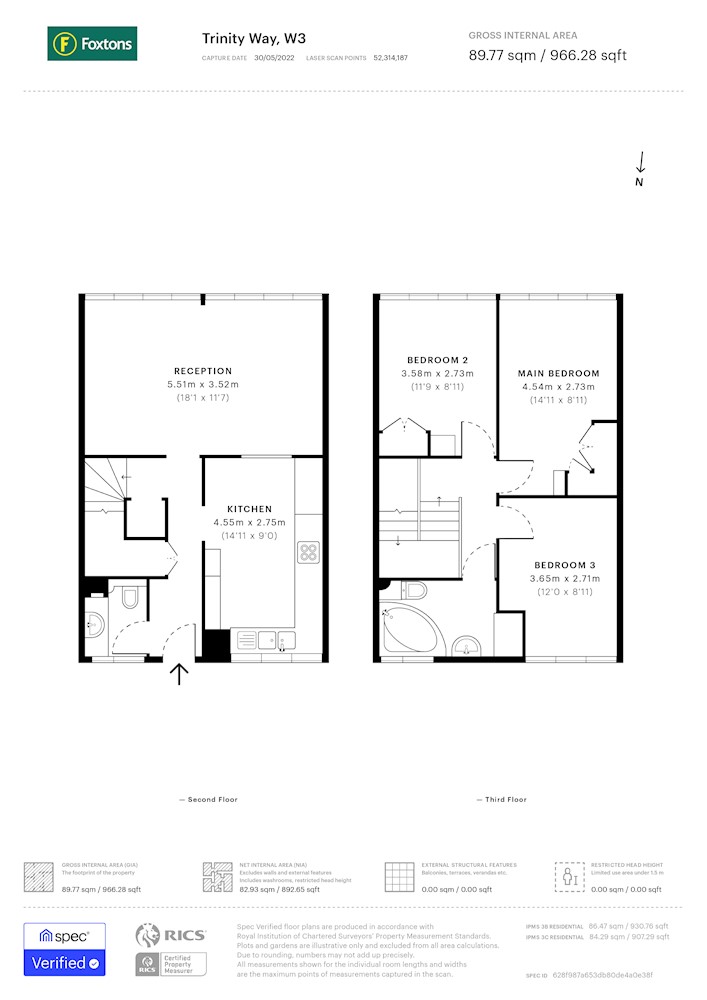 Third floor: main bedroom, two further bedrooms and family bathroom.