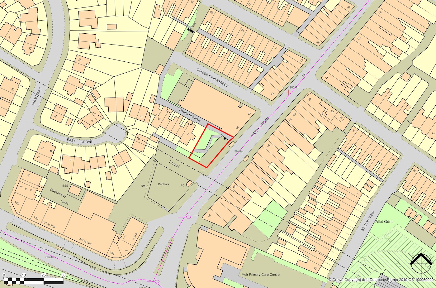 Land at Weston Road | 376 sq m (4,037 sq ft) or 0.0376 hectares (0.093 acres) | With planning for X2 48 sheet illuminated digital advertising hoardings With planning for X2 retail units and s/c apartments above | Let to Clear Channel UK Ltd for 7 years from 12/06/22 at £6,000 per annum (rolling breaks - refer to legal pack) |